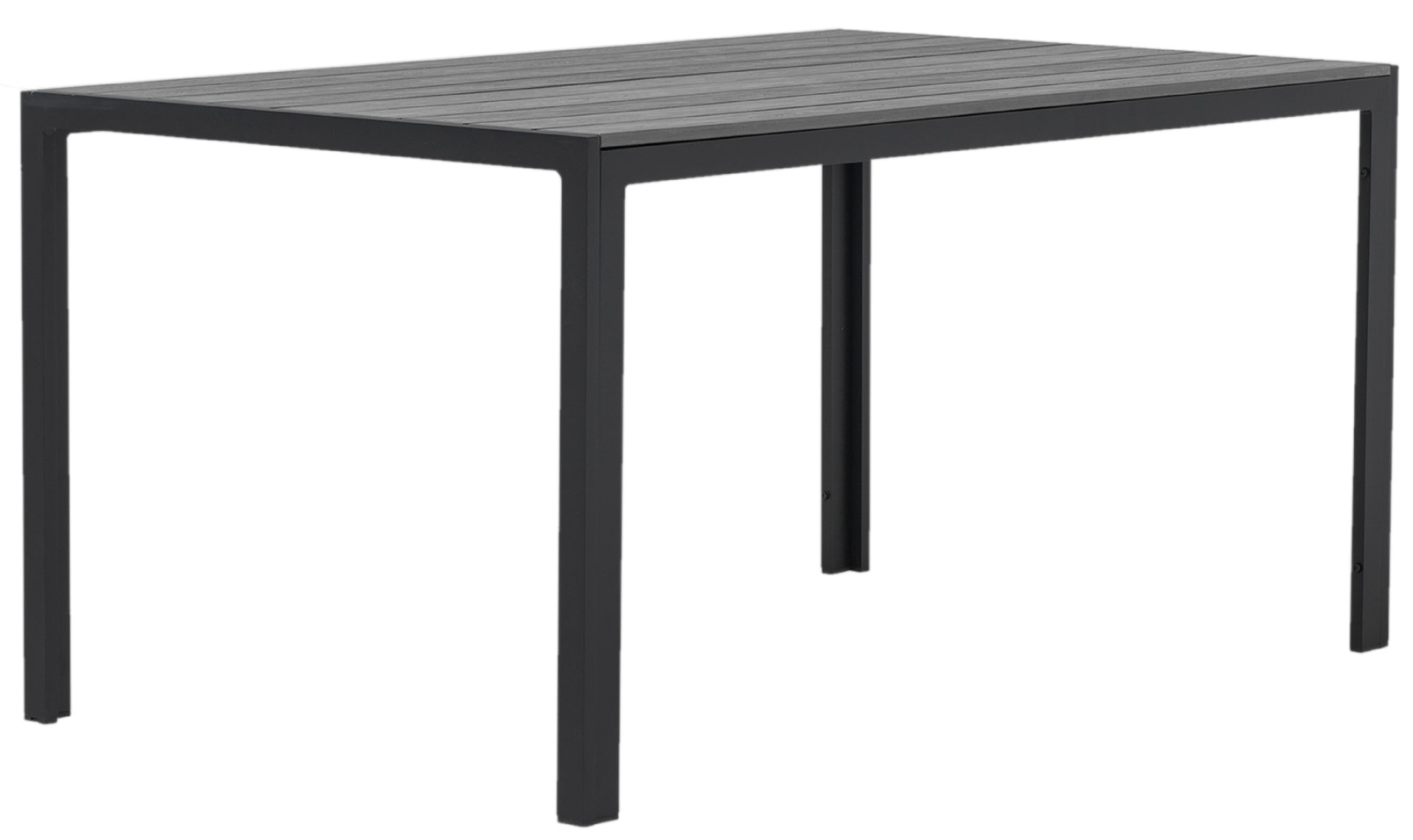 Skapa en bekväm plats för sommarens måltider utomhus med denna stilrena matgrupp för fyra personer. Ett rymligt bord med tålig bordsyta i grå aintwood och svartlackad aluminiumstomme från Las Vegas-serien kombineras här med flexibla positionsstolar från Asta-serien. Stolarna är tillverkade med en lätt och rostfri aluminiumstomme, svart textilene och vadderad sits i PVC-fri textilväv med quickdry foam, vilket gör dem både vädertåliga och behagliga att sitta i. Tack vare hopfällbar funktion och 7-stegs justerbar rygg vilar du enkelt i den position som passar för stunden. Tillsammans utgör de en praktisk och tålig grupp som passar lika bra för frukost i solen som middag i kvällsljuset.