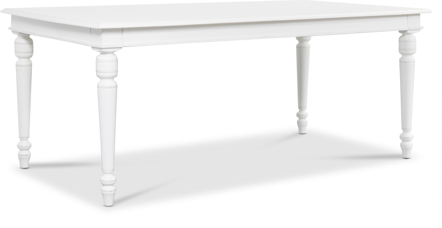 Matgrupp från Skånska Möbelhuset, Paris är ett klassiskt 180 cm matbord i vitlackat massivt trä med arbetade och väälplanerade detaljer. Sex stycken klassiska och matchande svarta Gaston stolar.