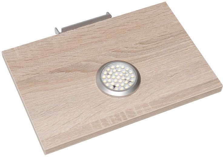 Modernt och ungdomligt designad sänggavel. Sänggaveln är vägghängd, men går lika bra att placera direkt på golvet. Tillkommer med två lösa hyllplan med LED lampor