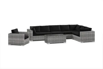 Bahamas L-formad utesoffa vänster, 7-sits med bord, Svart